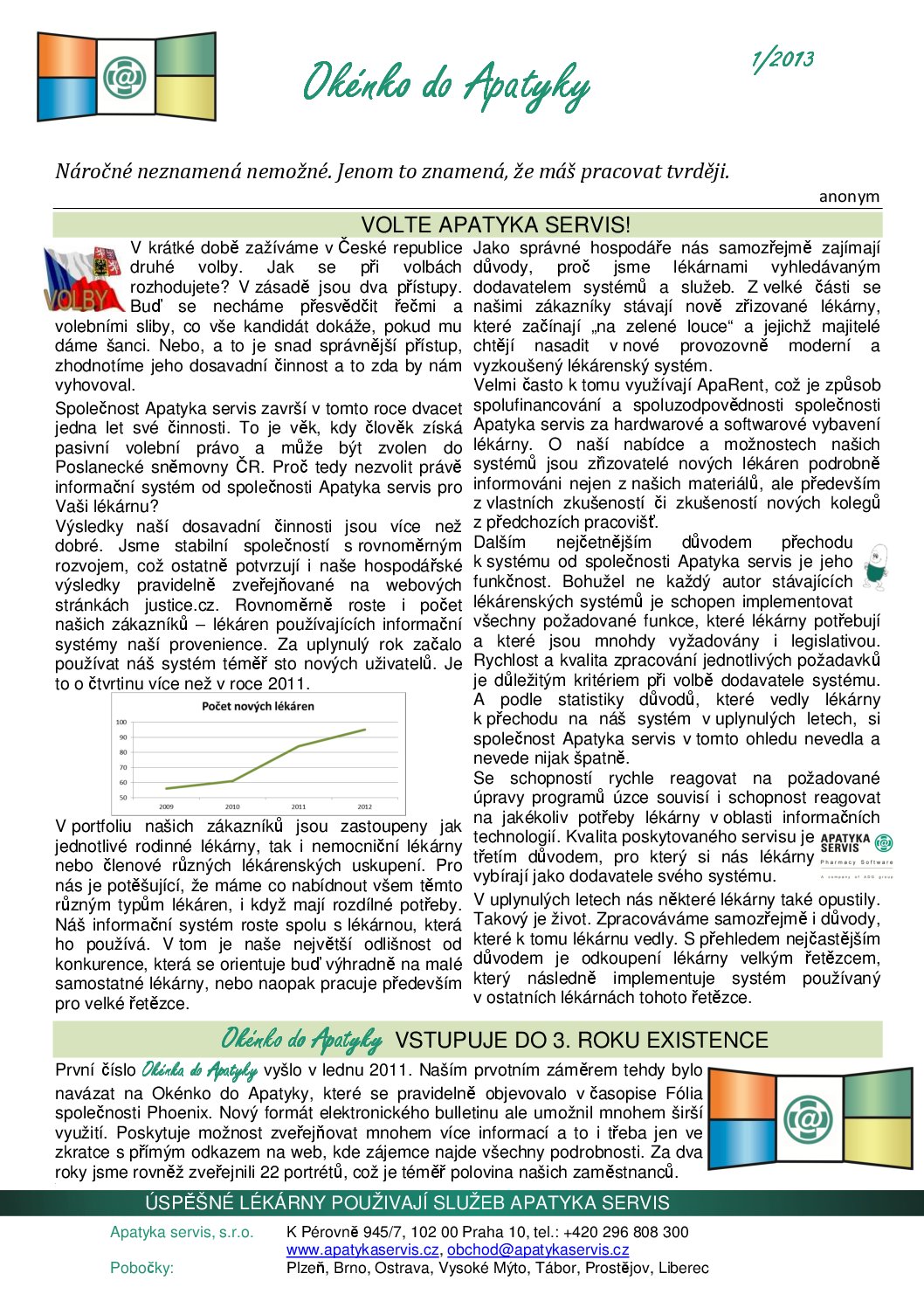 V lékárně Na Letné v Olomouci používáme lékárenský systém Mediox už patnáct let, a tak máme se službami poskytovanými společností Apatyka servis bohaté a dlouholeté zkušenosti. Za tu dobu jsme si prošli nejrůznějšími obdobími spolupráce, ale dnes bychom už neměnili. ?